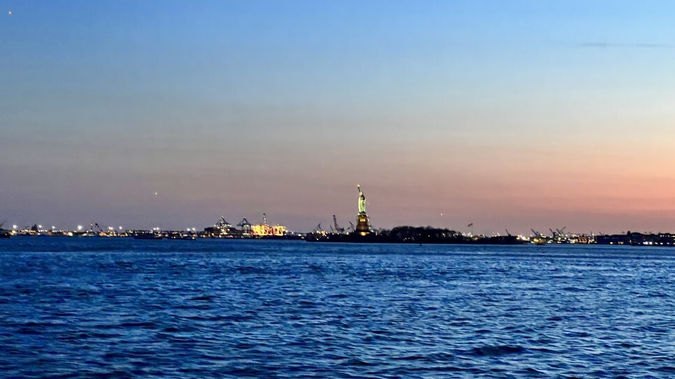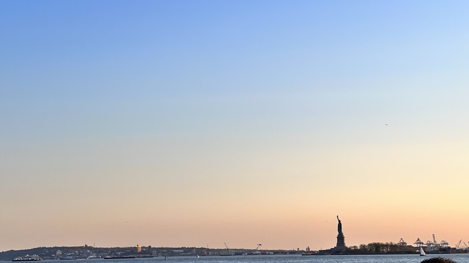 슬슬 해가지려 하고 저 멀리 자유의 여신상이 보인다.